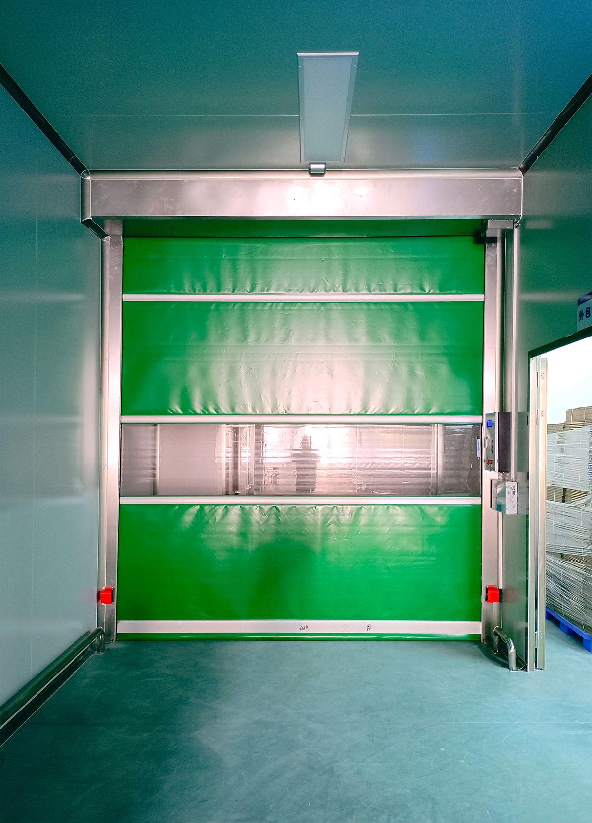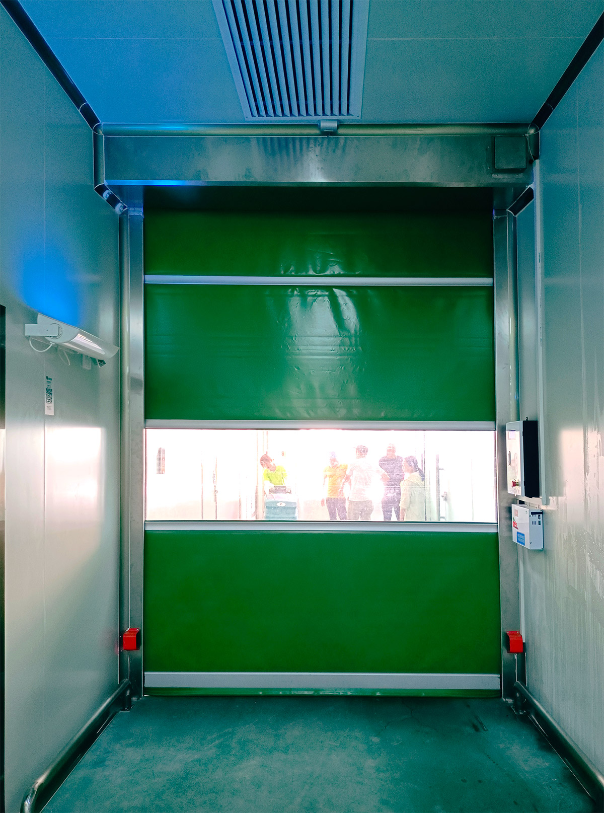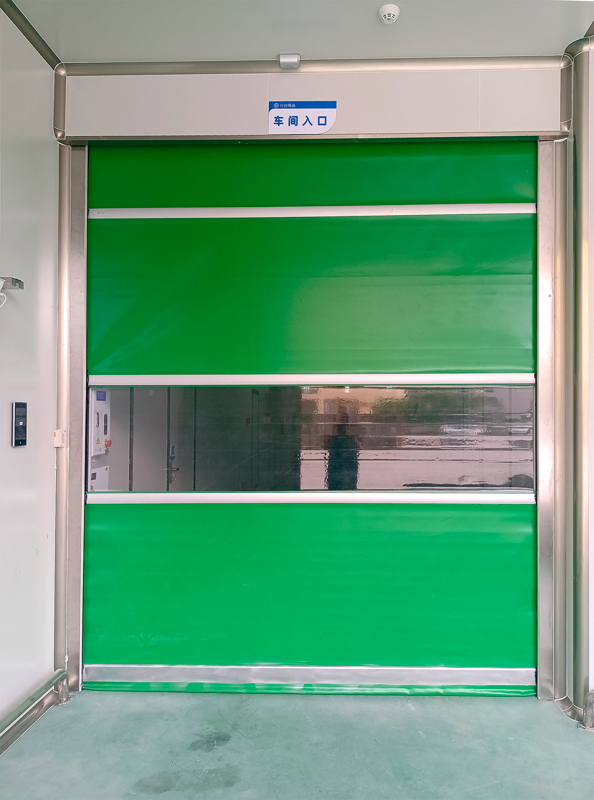 选用法国进口高强度工业织布,厚度为0.9mm,颜色:红色、黄色、蓝色、绿色、橘黄色、灰色、白色、黄色网格、白色网格等多种颜色可选择,中间加装透明视窗(厚1.2mm)使人员车辆出入更安全,具有高抗拉强度, 高抗穿刺性能,适用于频繁开启,高速运转;外置铝合金肋条,增加抗风效果。